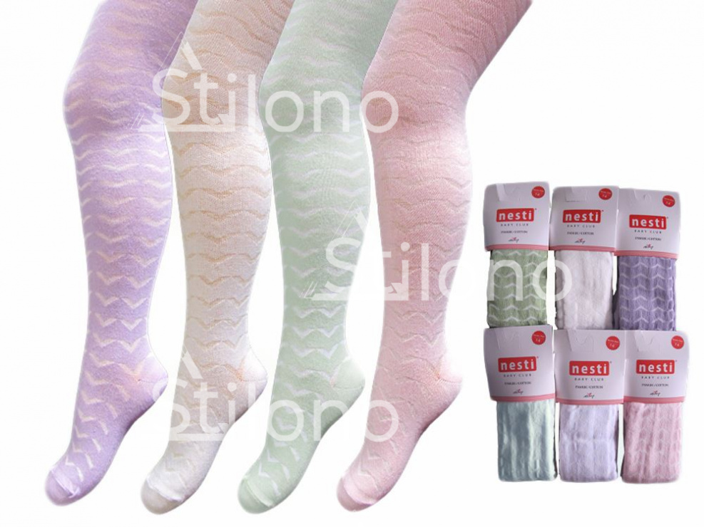Однотонные колготки с жаккардовым узором - отличное решение для торжественных случаев и на каждый день. Изделия бренда NESTI красиво смотрятся на ножке, хорошо держат форму, сохраняют эластичность и цвет после многократных стирок.