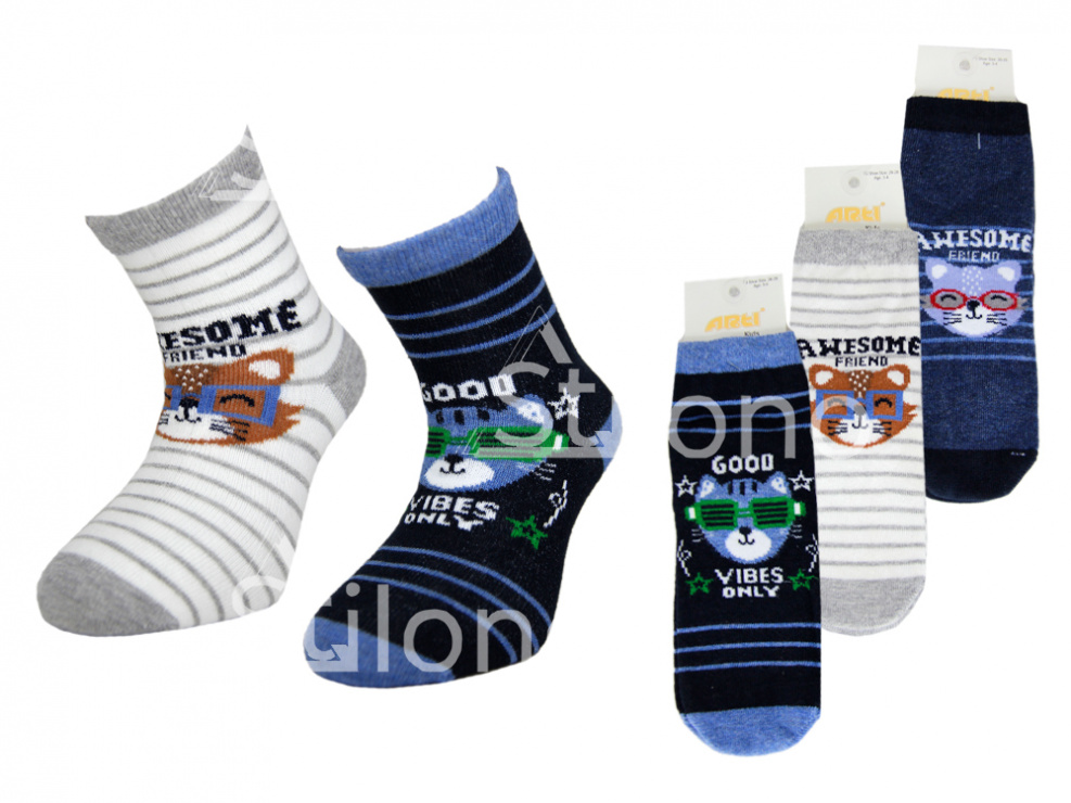 Хлопчатобумажные носки с рисунком  представлены удобной размерной линейкой. Это изделия, которые любимы детьми разного возраста ввиду высокой комфортности и эффектного принта. Носки бренда ARTI прекрасно носятся, сохраняют форму после стирок, не теряют яркости цвета. Резинка эластичная, не растягивается и не натирает кожу. Прекрасно подходят для каждодневной носки.